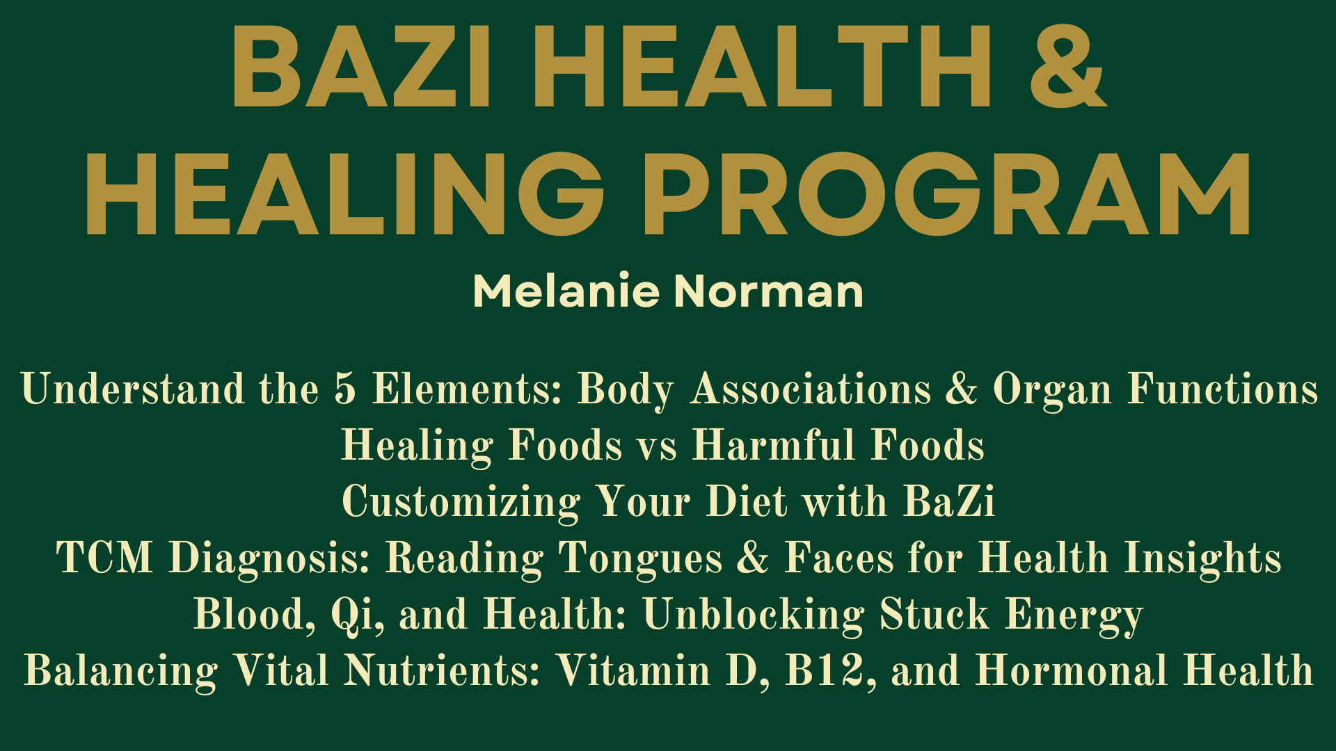 Melanie integrates her expertise in food, health, and BaZi to provide a holistic approach that enriches your learning experience. By incorporating principles from Traditional Chinese Medicine (TCM) and nutrition, Melanie emphasizes the vital connection between health and well-being, enhancing your understanding of BaZi’s impact on life.